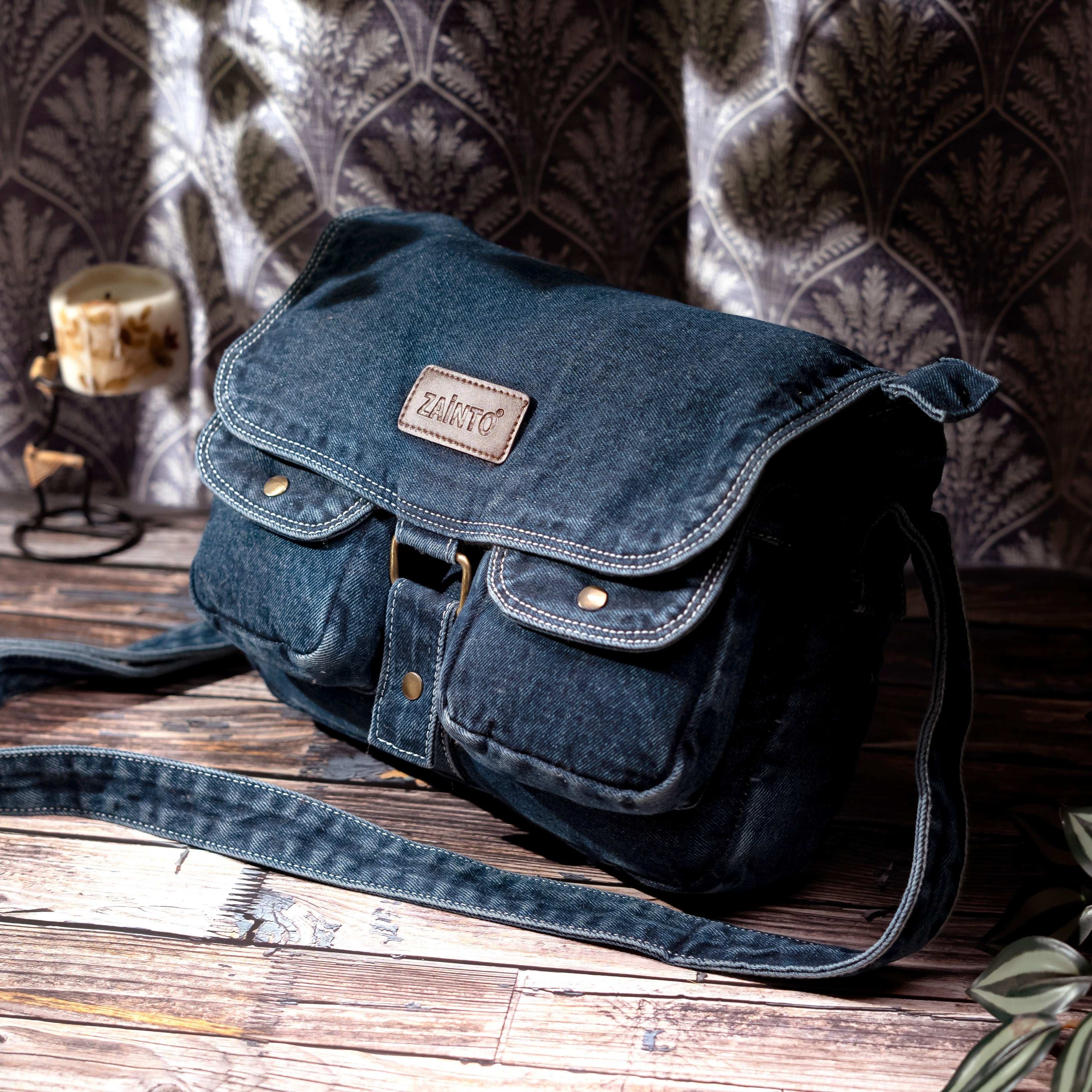 ZAINTO Denim Sling Bag for women and men Unisex Design, Crossbody Bag Adjustable Strap Students Stylish, Durable, and Eco-Friendly Book Bag