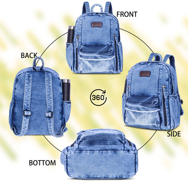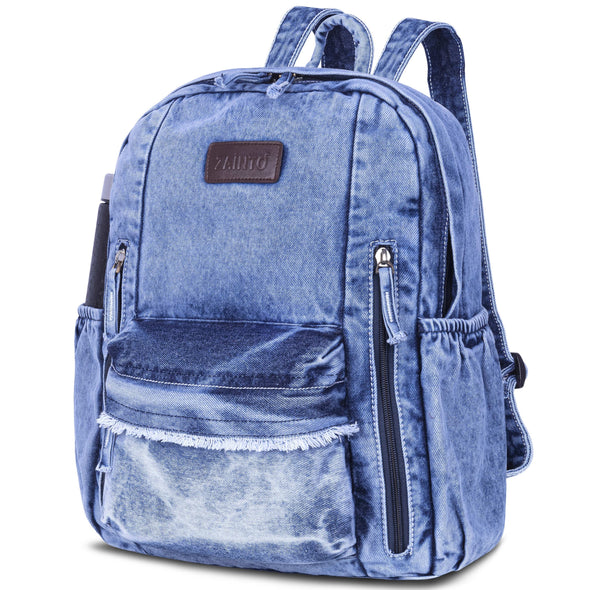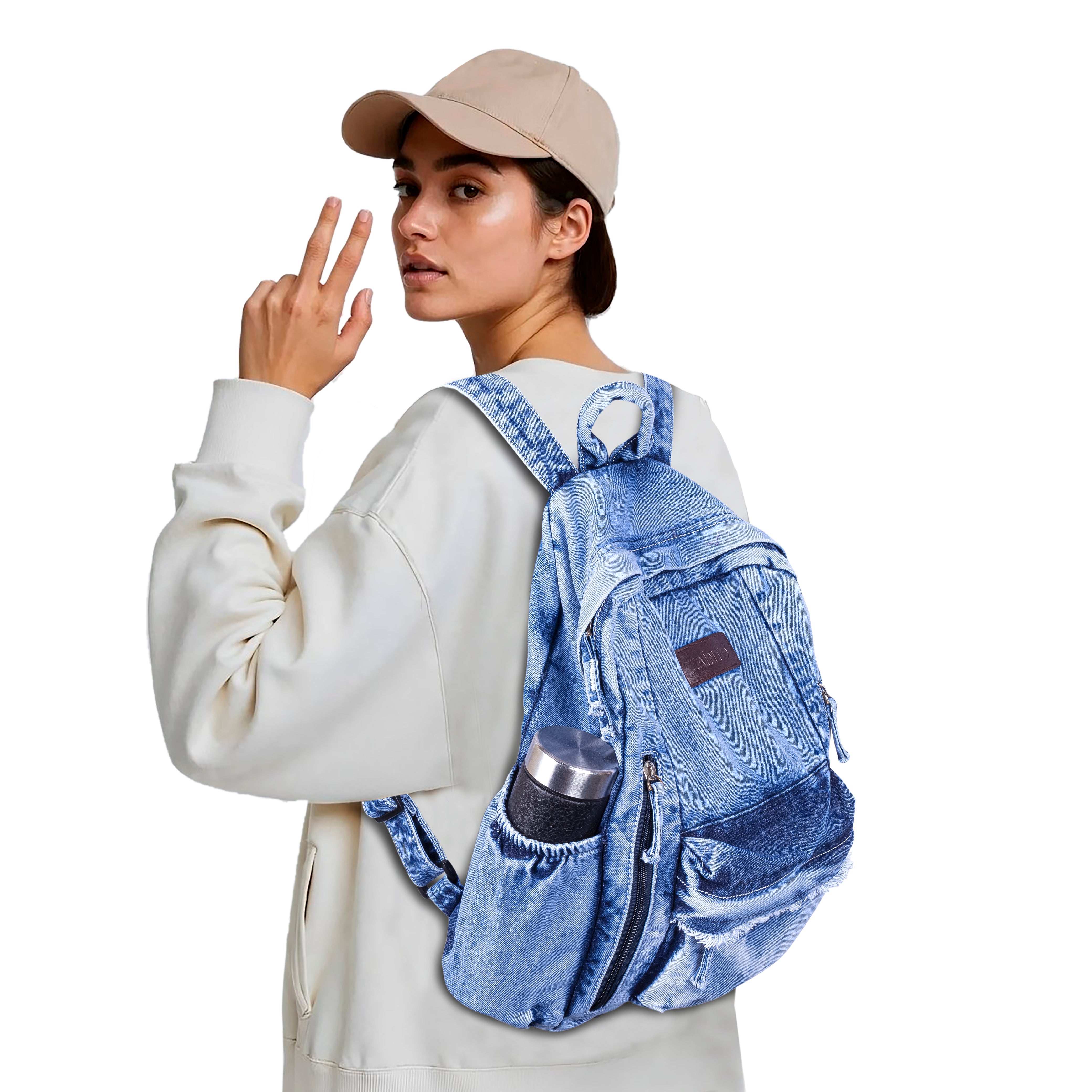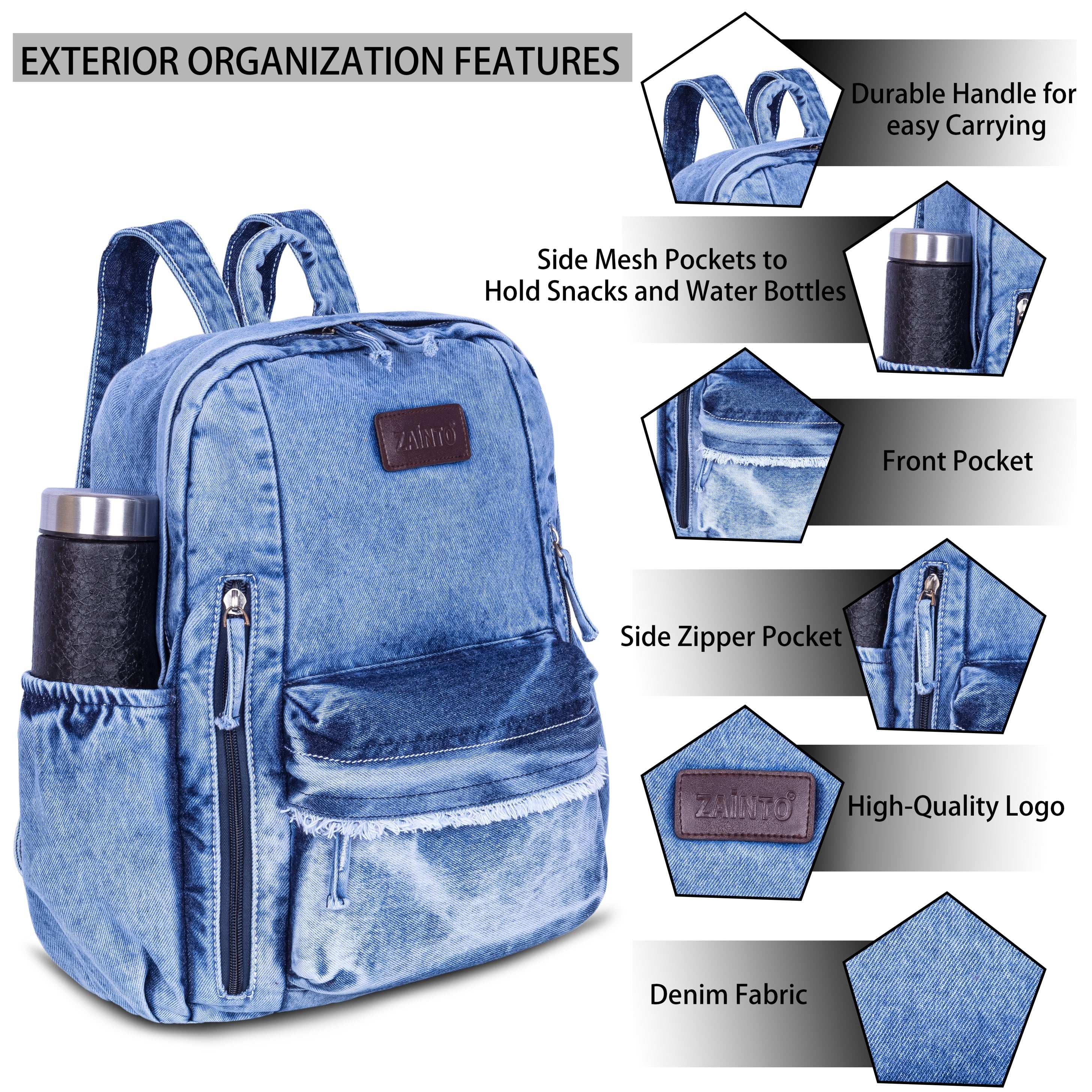 ZAINTO® Denim Backpack for Women | Stylish College Bag | Eco-Friendly Upcycled Office Backpack | Lightweight Blue Jeans Bag for Girls | Vintage, Durable & Spacious Daily Backpack